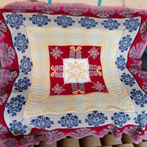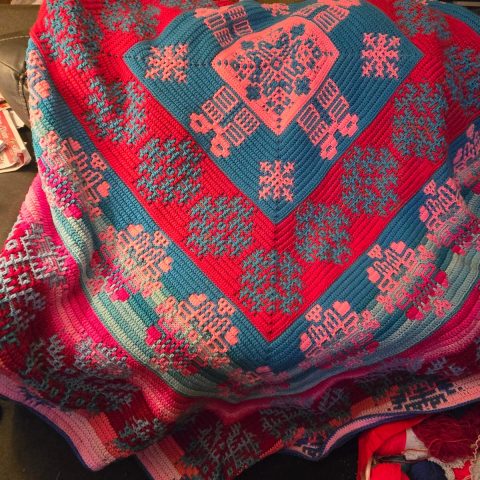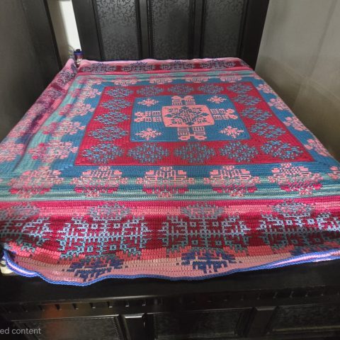 Mosaic crochet is a dense crochet, no “holes” so is ideal for blankets, rugs, runners, cushions, etc.