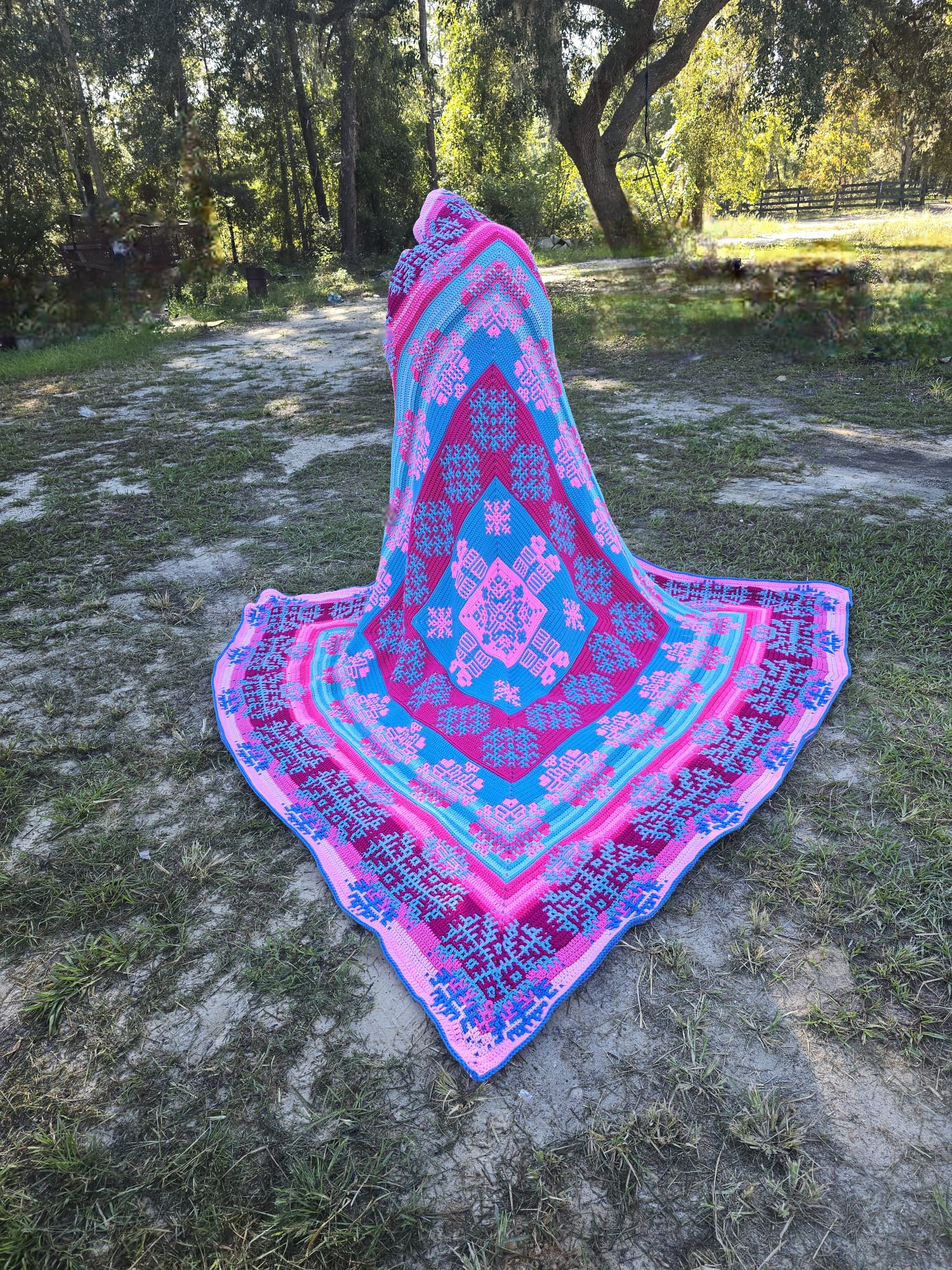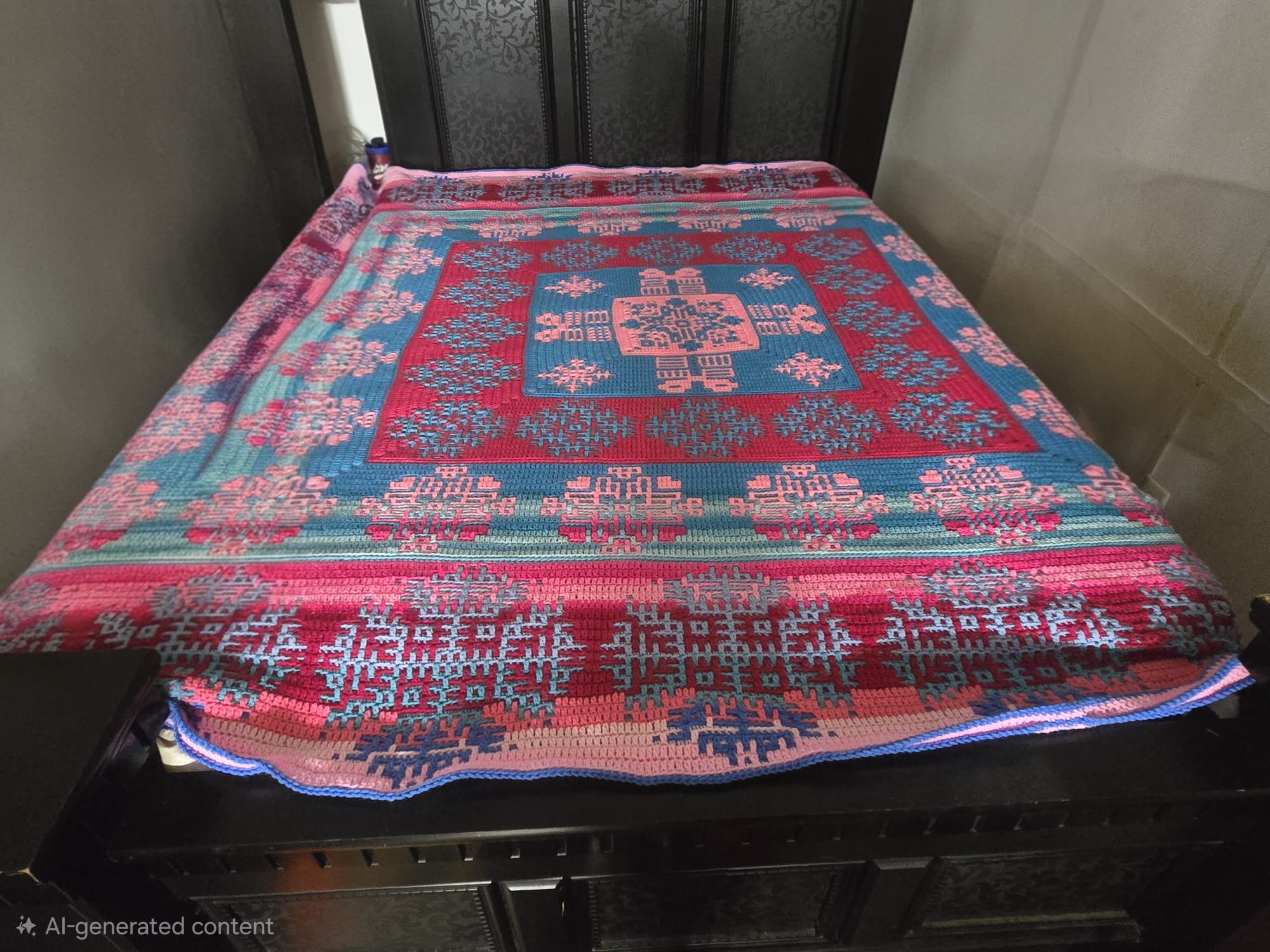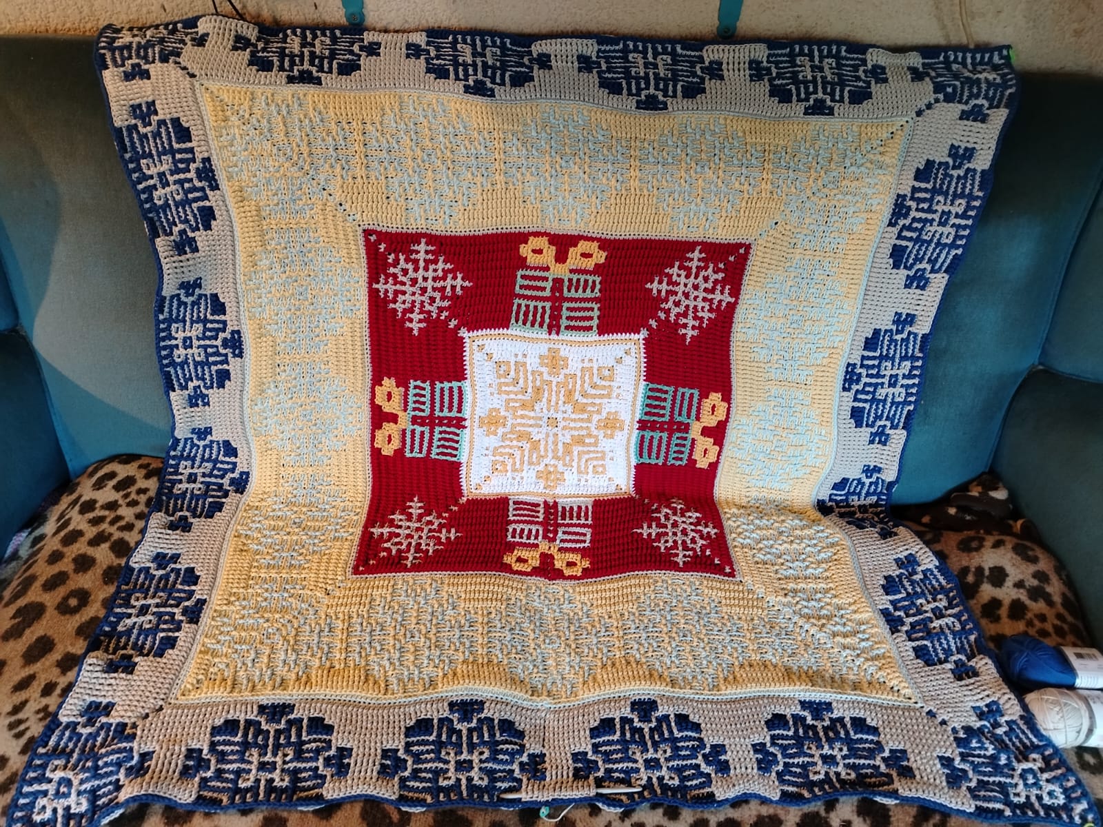 Mosaic crochet is a dense crochet, no “holes” so is ideal for blankets, rugs, runners, cushions, etc.